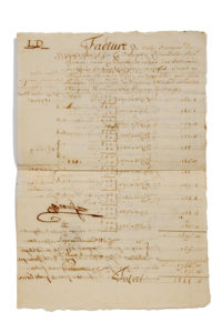 brigantin L'Hirondelle, à destination de Marseille, pour le compte du « navire négrier L'Industrie de Nantes », pour le compte du Nantais Ménard, d'un montant de 1 844,60 livres ; en partie réglée par le « produit de la vente de deux cent quarante trois noirs des deux sexes apportés par le navire l'Industrie, capitaine Duqué, arrivé à Cayenne le 6 may 1755 », s'élevant à 189 300 livres. La transaction est certifiée le 12 janvier 1758 et signée par SIMON, « chargé du recouvrement de la cargueson du navire L'industrie de Nantes ». Le document est certifié et signé le 14 janvier par Antoine Philippe LEMOYNE, « conseiller du Roy en ses Conseils, commissaire de la Marine, ordonnateur en l'Isle et terre ferme de Cayenne province de Guyanne en Amérique et subdélégué à l'intendance des Isles du Vent audit pays », qui fut commissaire ordonnateur du roi à Cayenne de 1747 à 1763. PROVENANCE Bibliothèque Dominique de VILLEPIN. Feux et flammes, II Les Porteurs de flammes (29 novembre 2013, n° 266).