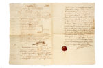 ESCLAVAGE P.S. par le commissaire de marine ordonnateur Antoine- Philippe LEMOYNE, Cayenne 14 janvier 1758 ; 3 pages in-fol., cachet de cire rouge aux armes (en partie brisé). « Facture » d'une cargaison de onze barriques de sucre chargée sur le...