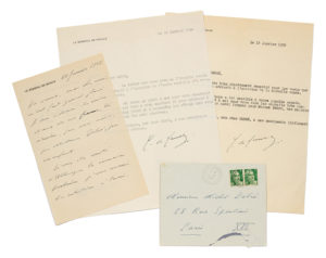 GAULLE Charles de (1890-1970) L.A.S. « C. de Gaulle », [Colombey-les-Deux-Églises] 10 janvier 1948, à Michel DEBRÉ ; 1 page et demie in-8 à son en-tête Le Général de Gaulle, enveloppe autographe timbrée. « Vos voeux, mon cher ami, m'ont...