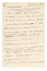 GAULLE Charles de (1890-1970) L.A.S. « C. de Gaulle », 30 avril 1950, [à Jacques SOUSTELLE] ; 1 page et demie in-8 à son en-tête Le Général de Gaulle. Intéressante note concernant le R.P.F. et un scandale financier. Il s'agit ici de l'affaire...