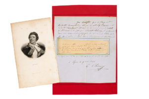 à voir ceux qui en sont revetus un homme d'honneur devroit avoir honte de faire partie de cette classe. [...] À la honte de la noblesse ce nest pas parmi eux que lon trouve ni la vertu ni le merite mais on y trouve en revanche beaucoup de hauteur et darogance »... Certificat d'authenticité joint par Gabriel CHARAVAY (1819-1879),Lyon 9 mai 1846 : « Je certifie que le fragment ci-contre [...] est écrit de la main même de Marat [...]. Il se trouvait dans un manuscrit autographe de cet homme célèbre que sa soeur, alors à Paris dans l'indigence et fort avancée en âge, me céda en 1840, une année avant sa mort »...