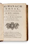 ALMANACH ROYAL. 1790. Almanach royal. Année commune M DCC LXXXX présenté à sa Majesté. Pour la première fois en 1699, par Laurent D'Houry, éditeur... Paris, Veuve D'Houry & Debure, 1790. In-12. 694 pp. Truffé d'un retirage vert d'un assignat...