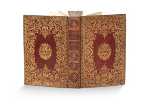 calendrier et 2 à la fin. Maroquin rouge strictement de l'époque, dos lisse orné, titre et date dorés, belle plaque dorée de type rocaille attribuable à Dubuisson aux plats, filet et roulette dorés sur les plats, armes frappées au centre, roulette dorée aux contreplats, tranches dorées. Bel exemplaire aux armes du chancelier d'Aguesseau peut-être reprises par son fils pour la bibliothèque familiale compte tenu de la date de parution. Bel exemplaire bien relié, intérieur très frais imprimé sur vergé Légers frottements aux coins, coupes et coiffes.
