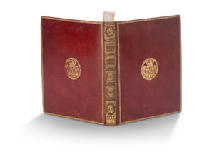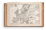 numérotées 1 à 49 (avec une 17 bis). Maroquin rouge de l'époque, dos à 6 compartiments orné du chiffre de Louis XV dans un caisson doré et f leuronné, tranches jaspées, armes dorées poussées au centre des plats. Magnifique exemplaire aux armes des Bourbons, complet de ses cartes. Édition originale de cet atlas établi pour illustrer la 3e édition du texte de l'Abbé Raynal et notamment Diderot, L'Histoire philosophique et politique des établissements et du commerce des Européens dans les deux Indes ou Histoire des Indes, la dernière du vivant de Raynal. La page de titre ne fournit aucune donnée sur la publication. L'ouvrage était en effet soumis à des poursuites et condamnations depuis sa parution et ne circulera pour cette édition que dans un milieu aisé et confidentiel, avec une tolérance qui fut obtenue par Panckoucke. Le livre dénonçait l'esclavage et la colonisation proposant un nouveau regard sur la question coloniale et l'économie du commerce des Indes. Les cartes gravées sur cuivre en noir et finement exécutées, ainsi que les tableaux, sont en très bon état. Comprend 2 cartes du monde et 23 tableaux statistiques du commerce des grandes nations européennes avec le Nouveau monde. Marges non rognées. Rigobert Bonne (1727-1795) était l'un des plus importants cartographes de la seconde moitié du XVIIIe. Il sert comme hydrographe en France et produit durant son mandat un nombre important de cartes détaillées, en particulier des régions côtières. Son travail, souvent dépourvu de cartouches décoratifs ou roses des vents, marque un tournant dans la cartographie européenne, passant de l'ornement à la cartographie technique. Petite usure d'usage à la reliure.