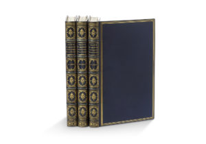d'un double filet doré, triple filet doré encadrant les plats, dentelle intérieure, tranches dorées, couvertures conservées, sous étui marbré et compartimenté. Non paginés. Bel exemplaire de premier tirage avec les couvertures illustrées conservées, et enrichi de la couverture de la 3e livraison “Le Juif errant”. Édition originale parue en 3 volumes. «Admirable publication très estimée à juste titre et peut être comparée aux beaux livres illustrés du XVIIIe» (Carteret). Dans un beau maroquin signé Chambolle-Duru. Il se compose de 3 séries reliées en 3 volumes in-8 non paginés. Chaque série comporte une page de titre, une page de titre gravée, la liste des chansons, une introduction et les chansons richement illustrées de vignettes dessinées par E. de Beaumont,Boilly, Daubigny, Pascal, Staal Stenheil et autres... Chaque chanson est précédée d'une notice et suivie des partitions musicales. Très légères rousseurs, petits défauts sur l'étui. PROVENANCE Charles-Louis Poiret, étiquette gravée sur acier, tirée en bleu, portant ses initiales dans la gravure (CLP) et l'inscription “Castigans Libro Poemas”.
