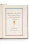 dorés encadrant les plats, roulette dorée sur les coupes et la chasse, tranches jaune jaspées de rouge. Titre manuscrit et 41 planches. Belle suite comprenant un frontispice et 40 planches gravées au burin en noir d'après Nicolas Cochin par Saint Aubin, Dambrun,Lingée, Ponce, Prevost, Varin, Tilliard, Simonet et autres... Elle est accompagnée d'une page de titre manuscrite en bleu et rouge. Mors, coiffes et coupes légèrement frottés, accrocs à un coin, petites rousseurs marginales.