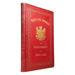 COIGNET, Jules. ACHARD, Amédée. Bade et ses environs. Paris, L. Hachette et Cie, 1858. Grand in folio (55,5 x 40 cm). Chagrin rouge de l'éditeur à décor d'encadrement, dos à faux-nerfs orné de caissons muets, titre doré au dos et sur le plat...