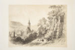 supérieur avec reproduction des grandes armes dorées du Grand Duché de Bade dorées au centre, roulettes intérieures et sur les coupes, contregardes et gardes de tabis coquille, tranches vertes peintes d'un semis de f leurs dorées. Reliure signée A. Binant. (cachet au premier contreplat). Orné d'un titre lithographié avec vignette et rehauts, 27 lithographies horstexte en noir sur fond préparé réalisées par Sabatier d'après les dessins de Coignet, et de nombreuses vignettes et culs-delampe. 61 pp. de notices par Amédée Achard accompagnent les planches. Seule édition. Seulement 2 exemplaires au CCFr. Rare et bel ouvrage consacré au pays de Bade et à ses environs, il s'agit de l'un des recueils de gravures les plus célèbres du peintre de l'École de Barbizon, Jules Coignet, présenté ici dans une superbe reliure signée Binant. Paysagiste d'une grande sensibilité, Coignet puisa l'inspiration de cet album dans ses propres voyages à travers le pays de Bade. La reliure, d'une exécution remarquable, provient de la maison Binant, fondée vers 1820 par Bruno Binant, papetier, marchand de couleurs et de tableaux, et poursuivie par son fils Alfred, qui développa une spécialité de toiles à peindre et de toiles à décor. On y voit notamment l'Eglise d'Ebersteinburg, l'Allée de Lichtenthal, la Cascade de Geroldsau. la Tour d'Yburg, la Scierie sur la route d'Eberstein, Gernsbach, Forbach, Allerheiligen, Le Mummelsee,Le Val d'Enfer... Infimes rousseurs. BADEN-BADEN. ALLEMAGNE. FORÊT NOIRE. ROMANTISME. PROTO-IMPRESSIONNISME.