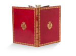 richement ornés, roulette et filets dorés encadrant les plats, fer doré aux armes couronnées à devise poussé au centre des plats, tranches dorées. Bel exemplaire de maroquin rouge aux armes du Marquis Helion de Villeneuve-Trans. (1827-1893). Le marquis fut une des personnalités curieuses de son temps, ayant épousé les idées démocratiques et accueilli avec transport la Révolution de 1848, puis celle de 1870. Collectionneur de livres à figures averti, il réunit une incomparable collection avec ses armes frappées. Exemplaire sur grand papier de vélin, avec les planches numérotées. Avec des figures par Monsiau, gravées par Colibert. Petits frottements à la reliure, salissures sur les plats mais bel exemplaire. PROVENANCE Bibliothèque du Marquis d'Hélion-Charles-Édouard de Villeuneuve- Trans, avec la devise «A tout-Premier Marquis de France». Exlibris Alfred Piet, homme de loi, gravé du XIXe tiré en sanguine au premier contreplat.