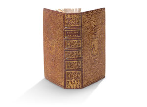 strictement de l'époque, dos orné à 5 nerfs, armes dorées poussées au centre des plats, très belles gardes de papier dominoté doré, tranches dorées. Illustré de 3 planches gravées sur cuivre en noir dont un frontispice par Duflos, et l'une par Moreau le jeune d'après Rubens. Très bel exemplaire. Dans un beau maroquin de style “à la fanfare” aux armes de la reine Marie Leczinska, épouse du roi Louis XV. Très légère oxydation et très discrets petits frottements d'usage à la reliure.