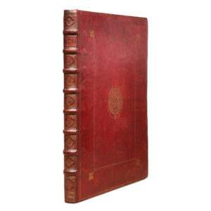 planches et cartes dont deux dépliantes, gravées en taille-douce en noir à double page par Nicolas Cochin,Gabriel et Adam Perelle, François Collignon, François Ertinger d'après les dessins de Beaulieu. Montées sur onglets. Ces illustrations comprennent des scènes historiées de sièges et batailles, avec profils, plans et cartes. Elles dépeignent les événements qui ont eu lieu entre 1643 et 1648, 1654 et 1659 et enfin 1662. Sans le texte. Très beau maroquin rouge du XVIIe siècle, dos à huit nerfs richement orné titré en lettres dorées Plans de Beaulieu, double ornement doré à la Duseuil en encadrement des plats avec fleurs de lys dorées en écoinçons, armes dorées frappées au centre, roulette dorée aux contreplats et sur les coupes, tranches dorées, gardes marbrées. Bel exemplaire de planches de batailles du Grand Beaulieu provenant de la bibliothèque du Grand Dauphin, fils aîné de Louis XIV, avec ses armes poussées au centre. Louis de France, dit « Le Grand Dauphin » ou « Monseigneur », grand-père de Louis XV, (1661-1711), n'a jamais régné. Héritier de la Couronne, il meurt avant son père. Mais celui-ci le préparait à devenir roi : il occupa des postes politiques et militaires, instruit avec un goût pour les arts et les plaisirs de la Cour. Compte tenu de l'aspect des tirages, de la reliure à la Duseuil et du propriétaire des armes apposées dessus, notre exemplaire fait très certainement partie des impressions de Beaulieu à la fin de sa vie ou celles éditées à la suite par Hamon des Roches. Connu sous le nom de Grand Beaulieu, ces oeuvres sont l'aboutissement de la grande carrière de militaire de Pontault de Beaulieu. Illustrant les batailles de Louis XIII et Louis XIV, elles présentent des cartes, plans et vues de villes ornées pour nombre d'entre elles, de scènes de batailles terrestres ou navales. Sébastien de Pontault, sieur de Beaulieu (1612-1674), entra très jeune au service du roi et se distingua dans de nombreux sièges et batailles, de La Rochelle à Dunkerque. Officier d'artillerie valeureux, plusieurs fois blessé jusqu'à en perdre un bras, il poursuivit néanmoins sa carrière avec bravoure, occupant des charges de Commissaire puis de Contrôleur général d'artillerie Dès 1642, à la demande du roi, il fait dresser et imprimer des plans de batailles avec un plan des opérations militaires et un profil de la ville. Beaulieu meurt en 1674 avant d'avoir achevé son recueil. L'ingénieur Jean-Baptiste Hamon Des Roches, mari de sa nièce, fut chargé d'en poursuivre l'exécution. A la mort prématurée de ce dernier, c'est sa femme, Reine-Michèle de Beaulieu, qui le termine et le publie en 1694, le dédicaçant à Louis XIV. Sa composition variait selon les exemplaires et on note quelques différences dans les planches elles-mêmes (choix des portraits, armoiries, encadrements). La composition et le nombre de gravures ne furent fixés que lorsque l'atlas fut intégré à la série du Cabinet du roi, en 1727, alors reimprimées sur un papier d'égal format, avec le texte, puis sans le texte. Les cuivres sont aujourd'hui conservés au Louvre. Pastoureau, Beaulieu XV et Atlas français XVIe-XVIIe siècles, 14- 38. OHR, 2522, n° 6. Reliure habilement restaurée.