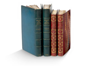 vignette gravée avec titre en bandeau au tome 2. Maroquin turquoise janséniste à contreplats doublés d'un maroquin mosaïqué jaune, turquoise et grenat à semis de motifs quadrilobé estampé doré et petits fers, dos à nerfs soulignés de filets à froid, titre et date dorés, filet doré sur les coupes, tranches dorées. Belles marges. Édition légitime et définitive (la dernière republiée par l'auteur) imprimée sur hollande. Exemplaire de premier tirage avec l'erreur pp. 150-151 avant correction et carton. Dans un beau maroquin signé du relieur-doreur d'art et décorateur Marius Michel (1846-1925). «Il existerait une édition sous la même date de 1753 qui n'a pas et ne doit pas avoir de figures.» Brunet. Maroquin très légèrement bruni au dos et en tête, discrète usure aux mors supérieurs en têtes, des rousseurs disséminées et papier très légèrement oxydé mais bel exemplaire. Quelques taches à la reliure, quelques rousseurs mais très bel ex On joint : PRÉVOST, Abbé. Histoire de Manon Lescaut et du chevalier Des Grieux. À Paris, P. Didot l'ainé, An V. 1797. 2 volumes in-18, (4)-225 pp. et (2)-213 pp., avec petites 8 figures gravées en noir de Lefevre et Coiny. Demi maroquin rouge du XIXe à coins souligné d'un double filet doré, dos à nerfs orné de caissons dorés, tranches dorées. Maroquin signé par Gaillard.