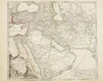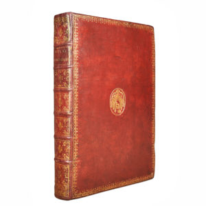 Roy, rüe St Jacques, 1757. Folio (53 x 37 cm). Titre gravé, [2] pp., avertissement, 40 pp., 108 cartes à double page montées sur gardes (103+5), dont 3 dépliantes. Maroquin rouge de l'époque, dos à six nerfs richement décoré de motifs et du titre dorés, dentelle et filets dorés sur les plats, filets dorés sur les bords, armes dorées au centre des plats. Première édition. Exemplaire complet, dans une belle reliure de maroquin aux armes de S.A.S. Gabriel Junosza Podoski, prince primat du royaume de Pologne. L'un des ouvrages français les plus significatifs et ambitieux du XVIIIe siècle. Illustré d'un titre allégorique gravé et de 108 cartes dont 12 pour la géographie ancienne et 96 (91+5) pour la géographie moderne (une mappemonde, 73 cartes d'Europe, 8 d'Asie, 2 d'Afrique, 7 d'Amérique et 5 des principales routes européennes). Quelques défauts infimes (très légères rousseurs aux cartes 10 et 28, petits renforts de papier au dos des cartes 31, 56 et 82, carte 33 très légèrement brunie). PROVENANCES Exemplaire provenant de la bibliothèque de Gabriel Junosza Podoski (1719-1777), archevêque de Gniezno et prince primat de Pologne et de Lituanie. Ses armoiries figurent sur les planches, accompagnées d'une note manuscrite issue des registres de l'abbaye de Saint-Victor de Marseille, mentionnant la mort du prélat. De la bibliothèque Silvy de Gravine (Marseille), avec un ex-libris à l'encre (XIXe siècle) au verso de la page de titre. Célèbres cartographes du XVIIIe siècle, Gilles et Didier Robert de Vaugondy tiennent à Paris, de 1731 à 1778, un atelier réputé de cartes et de globes. Père et fils, tous deux géographes du roi, réalisent des ouvrages majeurs comme l'Atlas Universel, emblématique de la cartographie française des Lumières.