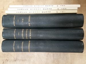 RENAN (Ernest). La Réforme intellectuelle et morale.— Dialogues et fragments philosophiques.— Vie de Jésus. Paris, Michel Lévy frères, 1872-1876 ; 3 vol. in-8, bradel demi-chagrin bleu nuit, titres dorés au dos. Edition originale pour les...