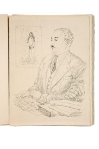 la Seine, ce très bel ouvrage est considéré comme le plus abouti de l'artiste. In-folio, en feuilles, sous chemise de papier chiffon avec plat supérieur orné d'une gravure en noir, placée sous une chemise cartonnée de velours gris à ruban, sous emboitage entoilé de l'éditeur, intérieur de velours jaune, avec reproduction de l'autographe de l'artiste estampé au premier plat. [4] pp. dont faux-titre, justification, titre en gris et noir, 110 pp. et [5] pp. dont la table. Tirage limité à 315 exemplaires numérotés. Un des 200 exemplaires sur Grand Vélin d'Arches, numéroté 225. L'illustration se décline sur 26 eaux-fortes de l'artiste dont 15 en couleurs, sous serpentes, et non 11 comme indiqué dans la table. Bien complet des 2 portraits en noir : le portrait de Héron de Villefosse et l'autoportrait de Foujita, dédié à Kimyo, sa femme (dédicace gravée dans le portait). Deux belles lettrines en noir, aquarellées à l'encre grise. Légères rousseurs marginales sur quelques ff. de texte et discrète oxydation de certains papiers. Petites griffures sur la chemise en velours.