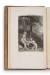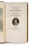 dorés, auteur et titre dorés, jeu de filets, et f leurons encadrant les caissons et les plats, dentelle dorée sur les chasses, tranches dorées [Morales Poitiers]. Édition illustrée d'un frontispice gravé au burin acier par Roger d'après Prudhon et un portrait de l'auteur en vignette au titre, gravé par Auguste St. Aubin.Traduit de grec par J. Amyot.
