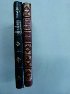 dorée, non rogné, [Rel. moderne]. Frontispice et figures gravées sur bois dans le texte d'après Eugène Froment. Édition originale. L'un des 450 ex. sur papier vergé d'Annonay teinté, seul tirage avec 50 sur papier de Hollande. Ex-libris gravé A. Bastet.— JoInT, du même : - SOULARY (Joséphin). La Chasse aux mouches d'or. Lyon, Scheuring, 1876, pet. in-8, demi-chagrin bleu nuit, dos à nerfs orné, couverture conservée. Frontispice gravé à l'eau-forte. Plaisant exemplaire.