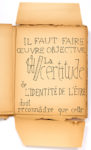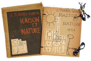 imprimé du motif contrecollé sur l'étui. Le tout placé dans un étui de toile de jute brute sérigraphiée en noir et rouge (titre) avec un dessin de l'ouvrage, signé et daté, imprimé sur papier aux contours du motif, contrecollé. Édition originale. Ouvrage photogravé, dessins au trait et texte autographié en noir. Livre d'artiste reproduisant le texte et les dessins de l'auteur,Joaquin Torres-Garcia (1874-1949), artiste hispano-uruguayen lié aux Cubistes et Surréalistes. Publié deux ans après son initiative constructiviste Cercle et Carré (1929-1930), ce titre se présente comme le manifeste d'un artiste montant, il expose chez Jeanne Bucher en 1931 ou à la galerie Percier ; chez Georges Petit en compagnie de Giacometti, Dali,Ernst ou Miró ; en 1932 chez Pierre Loeb... Ce sera son dernier livre avant son retour à Montevideo. Unique ouvrage publié par les éditions Iman, de la revue du même nom, fondée par la poétesse argentine Elvira de Alvear, muse de Borges. Légère oxydation homogène des feuillets, comme on le voit souvent sur des papiers de cette époque, la chemise interne à rabats a cédé au niveau des pliures, la cheminée du dessin contrecollé sur l'étui est manquante, quelques brins effilochés au bord de la chemise mais bon exemplaire.