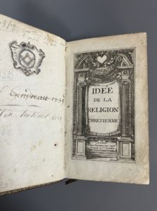 [Jansénisme]. [BLONDEL (Laurent) ; LOUAIL (Jean)]. Idée de la religion chrétienne. où l'on explique succinctement tout ce qui est nécessaire pour être sauvé. A Paris, chez Jouenne, 1728. In-12, [4] f., 245 p., [1] f., fr., pl., maroquin rouge...