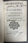 [DANIEL (Gabriel)]. Entretiens de Cleandre et d'Eudoxe, sur les Lettres au provincial. A Cologne, chez P. Marteau, 1694. [2] f., 406 p. - [Relié à la suite, du même] : Lettres au R. Père Alexandre où se fait le parallèle de la doctrine des...