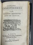 DESPORTES (Philippe), trad. Les CL. pseaumes de David mis en vers françois... Avec quelques cantiques de la Bible, & autres oeuvres chrestiennes, & prieres du mesme autheur. A Paris, par la Vve M. Patisson, 1603. Trois parties en un volume in-12,...