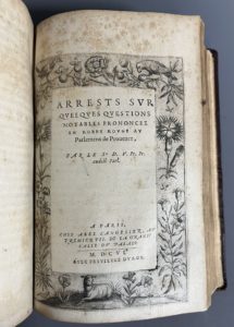 [Livre du XVIe siècle]. [DU VAIR (Guillaume)]. [Harangues, Eloquence, Arrests ; Recueil réunissant trois ouvrages]. A Paris, chez Abel l'Angelier, 1606. Trois ouvrages en un fort volume in-8, [2] f. (titre, table et privil. au v°), 144-196 p.,...