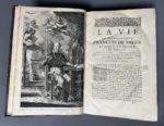 P. Nicolas Talon,... A Paris, par A. Cottinet, J. Roger, Th., Lozet, et se vendent chez S. Huré, 1641. 2 vol. in-folio, basane fauve mouchetée fin XVIIe s., dos à 6 nerfs, pièce de titre saumon, tomaison frappée, caissons ornés, tranches jaspées (défauts dont coupes et coiffes usées en pied au t.1, taches aux plats du t. ; accroc marg. p. 430-34 t.1, rouss. modérées, mouillures claire marginale au t.2). Bonne édition, illustrée d'un beau portrait du saint à sa table de travail, dessiné et gravé par Grégoire Huret (1606-1670).