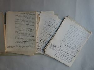 nombreux feuillets manuscrits et de tapuscrits, souvent corrigés. La partie la plus importante, et la plus intéressante quant à la genèse de l'reuvre, est celle pour le onzième chapitre, intitulé "La Maison veuve", pour laquelle on trouve différents états du manuscrit et des tapuscrits corrigés. Cette reuvre semble inédite et il ne nous a pas été permis de trouver la trace d'autres reuvres de ce Léon Desbois. On joint à ce dossier, le manuscrit (qqs pages dactylographiées) d'une préface, intitulée "avant-dire", ainsi que le tapuscrit d'un court texte intitulé "Jean sans rien", très certainement du même auteur