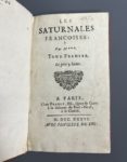 [LA BAUME-DESDOSSAT (Jacques-François de) ; CROQUET (Thomas)]. Les saturnales françoises. A Paris, chez Prault, 1736. Deux volumes in-12, [1] f., 269 p., [1] f. (privil.) + [1] f., 296 p., [1] f. (errata), veau blond époque, dos à 5 nerfs, pièce...