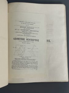 LA GOURNERIE (Jules de). Traité de géométrie descriptive. Paris, Gauthier-Villars, 1862-1873. Deux volumes in-4, veau glacé bleu nuit époque, dos à 4 nerfs, auteur, titre et sous-titre dorés, caissons bordés de 3 filets dorés, de même que...
