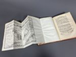 peut servir de suite aux Antiquités de feu M. le comte de Caylus. A Paris, chez Hérissant le fils, 1770. In-4, XXIV-379 p., [1] f. (privil.), veau havane moucheté époque, dos à 5 nerfs, pièce de titre maroquin rouge, caissons ornés, triple filet à froid bordant les plats, double filet doré aux coupes, tranches rouges (petite fente an tête d'un mors, un coin usé). Première édition collective de ce recueil de mémoires, illustrée de 29 planches dépliantes gravées sur cuivre, dont des cartes et plans. Les lieux concernés par ces travaux sont variés : ruines romains de Saintes, antiquités des environs de Tours, briquetage de Marsal en Lorraine, antiquités des environs de Vannes, recherches sur l'ancien Blabia des Romains, antiquités égyptiennes. Provenance : Mario Landi Badiche, prêtre (ex-libris ms. de l'époque au titre) ; petit cachet frotté au titre.