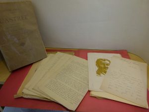 un poète et journaliste français, rédacteur en chef au Journal de Roanne. On joint les cinq forts volumes in-8 de cette édition (l'un des 400 exemplaires numérotés sur papier Alfa), ainsi que : - Le manuscrit autographe signé pour l'« introduction biographique et critique » pour le Baudelaire choisi, publié chez Lardanchet, 1918 (2 volumes) : 51 ff. pet. in-8 numérotés, les 15 premiers dactylographiés avec des corrections autographes. Portrait de Baudelaire gravé sur bois et tiré sur différents papiers joint. - « Les Vêpres sonnent », poème autographe signé, 1 p. in-12, papier vergé. - « Notre-Dame-des-Flots », poème autographe signé (signature barrée), 4 p. pet. in-8. - Épreuves corrigées du Poème pour la naissance d'une église, portant la mention autographe "Bon à tirer", signée de Louis Mercier, accompagnées d'une lettre autographe signée du 3 aout 1920 (3 p. pet. in-8, à l'en-tête du Journal de Roanne) dans laquelle il revient sur les corrections et peste après le prote de chez Protat. - Une lettre autographe signée du 8 juin (1 p. 1/2 pet. in-8, à l'en-tête du Journal de Roanne) dans laquelle il revient sur son portrait gravé sur bois par Vibert qu'il juge peu flatteur. On joint une épreuve signé de Vibert de ce portrait tiré sur papier de Chine. - 12 épreuves d'une gravure sur bois tirée en rouge