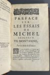 MONTAIGNE (Michel de). Les Essais... Nouvelle edition. Livre premier [-troisiesme]. Enrichie et augmentée aux marges du nom des autheurs qui y sont citez. Avec les versions des passages grecs, latins, & italiens. A Paris, chez C. Journel, 1659. 3...