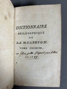[NONNOTTE (Claude-François)]. Dictionnaire philosophique de la religion, où l'on établit tous les points de la religion, attaqués par les incrédules, & où l'on répond à toutes leurs objections. Par l'auteur des Erreurs de Voltaire. S.l.,...