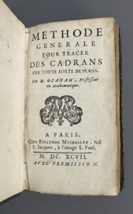 OZANAM (Jacques). Methode générale pour tracer des cadrans sur toute sorte de plans. A Paris, chez E. Michallet, 1697. In-12, [2] f., 181 p., [3] f., pl., veau havane époque, dos à 5 nerfs, titre doré (défauts dont une coiffe découverte, coins...