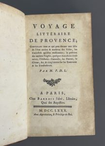 [PAPON (Jean-Pierre). Voyage littéraire de Provence, contenant tout ce qui peut donner une idée de l'état ancien et moderne des villes,... l'histoire naturelle,... et cinq lettres sur les trouvères et les troubadours, par M. P. D. L.. A Paris,...