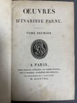 PARNY (Évariste). OEuvres. À Paris, Chez Debray, 1808. 5 volumes petit in-12, maroquin noir à longs grains époque, dos lisse richement orné, auteur, titre et tomaison dorés, plats bordés d'un large encadrement de filets et roulettes dorés,...