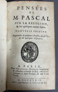PASCAL (Blaise). Pensées.... sur la religion et sur quelques autres sujets. A Paris, chez G. Desprez, 1734. In-12, CXII-483 p., [2] f. (privil.), maroquin citron début XIXe s., dos lisse orné de roulettes, fleurons et fers, pièce de titre...