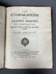 [RAPIN (René)]. Les comparaisons des grands hommes de l'Antiquité, qui ont excellé dans les belles lettres. A Paris, chez F. Muguet, 1684. 2 volumes in-4, XXVIII-305 p., [1] f. (privil.) + [10] f., 388 p., [8] f. (table), veau havane glacé...