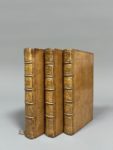 époque, dos à 5 nerfs, pièces de titre et de tomaison maroquin blond, caissons ornés, filet à froid bordant les plats, filet doré aux coupes, tranches marbrées (un mors fendu, qq. très rares défauts intérieurs). Edition illustrée d'un frontispice et de 7 planches, le tout gravé sur cuivre et non signé. Les tomes 1 et 2 renferment les texte du Conte du tonneau, le tome 3 fait suite et contient le Traité des dissentions entre les nobles et le peuple, L'Art de ramper en poësie, et L'Art du mensonge politique. Agréable exemplaire dans une élégante reliure. (Cohen 964 ne signale par erreur que 6 planches).
