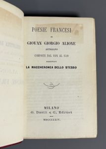 ALIONE (Giovanni Giorgio). Poesie francesi [et] Commedia. Milano, G. Daelli, 1864 et 1865. 2 ouvrages en un volume in-18, demi-maroquin cerise à coins, dos à 5 nerfs, auteur, titre, lieu et date dorés, caissons ornés, filet doré aux plats, tête...
