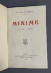 FOGAZZARO (Antonio). Minime. Studi, discorsi, pensieri. Milano, Baldini, Castoldi & C., 1908. In-12, maroquin rouge, dos à 5 nerfs, auteur, titre et date dorés, caissons ornés aux petits fers, plats décorés de deux doubles filets avec 4 fleurons...