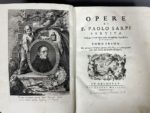 et qq. salissures). Important recueil d'œuvres de Paolo Sarpi (1552-1623), théologien de la République de Venise, procureur général de l'Ordre des Servites de Marie. Edition soignée, illustrée de vignettes gravées et du portrait de l'auteur en frontispice. Exemplaire grand de marges et établi avec soin. Provenance : Antonio Providali (ex-libris ms. ancien au titre) ; cachet armorié XIXe s. aux gardes.