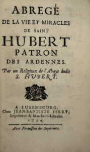 ABRÉGÉ — de la vie et des miracles de saint Hubert, patron des Ardennes. Par un Religieux de l’abaye dudit S. Hubert.