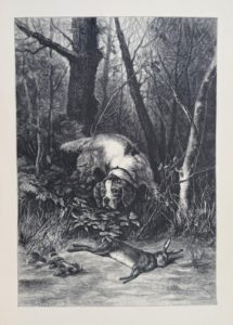 Paris, Firmin-Didot, s.d. [1878]. Grand in-4, percaline rouge, riche encadrement et titre dorés sur le premier plat, dos lisse, tranches dorées (Reliure de l'éditeur).Bel album publié par les éditeurs de La Chasse illustrée, comprenant un frontispice, une vignette de titre et 40 planches d'animaux et de scènes cynégétiques gravées sur bois d'après J. Gélibert, Riou, Huyot, Bellecroix, Yan Dargent, etc.