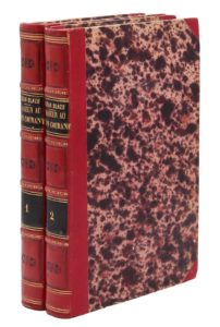 Paris, au dépôt de la librairie, Tresse, s.d. [vers 1838]. 2 volumes in-8, demi-veau rouge, dos orné, pièces de titre et de tomaison noires, tranches mouchetées (Reliure de l'époque).Édition originale, sous un titre de relais. Thiébaud n'a pas vu cette édition, mais la cite d'après Souhart.
