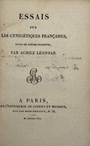 [CHANLAIRE (Léon de)] — Essais sur les Cynégétiques françaises, suivis de poésies fugitives, par Achille Léonnar.