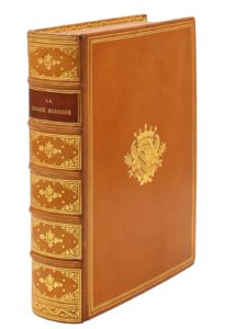 Paris, Larousse, s.d. [1900]. In-8, veau blond, triple filet doré, armoiries au centre, dos orné, pièce de titre havane, dentelle intérieure, tête dorée, non rogné, couverture et dos (Thierry succ. de Petit-Simier).Édition originale de cet ouvrage collectif précédé d'une introduction par Adolphe Chenevière et illustré de 438 figures et reproductions dans le texte.