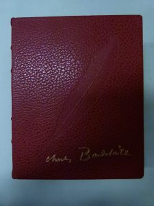 plats grand motif central à froid et signature dorée en pied, dos à nerfs, têtes dorées. Compositions en couleurs de Rena Tzolakis pour Les Fleurs du mal, de Bunel pour Le Spleen de Paris et de Tritsch pour Les Paradis artificiels. L'un des exemplaire numérotés sur papier vélin Daguerre. Bon exemplaire