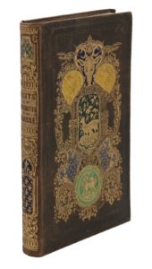 Tours, Mame, 1853. In-8, percaline gaufrée bleue, plats et dos ornés de plaques et de fers polychromes et dorés à sujets cynégétiques gravés par Haarhaus, dos lisse, tranches dorées (Cartonnage de l’éditeur).Unique édition, illustrée de 8 lithographies hors texte de Victor Adam finement coloriées.